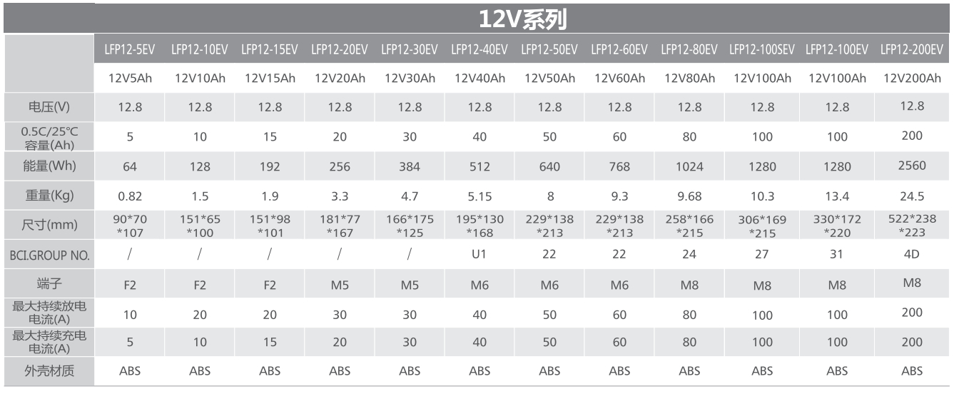 12V lithium series is a standard lithium battery product suitable for various application scenarios. A variety of capacities can be selected. The battery has high energy density, environmental protection, excellent deep discharge performance, high-level safety protection, and it is safe and reliable in the whole life cycle.