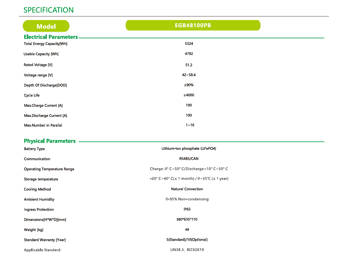 Home Battery EGB Series (Low Voltage Battery)